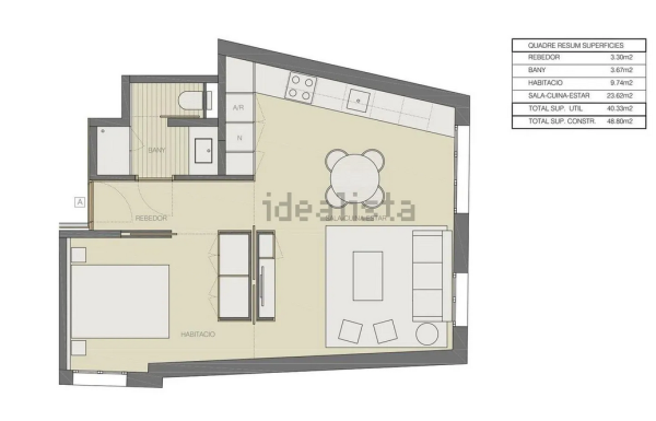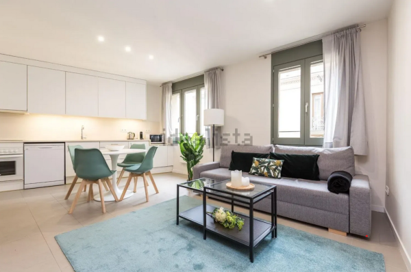 Amplio apartamento de 48 m2 y una habitación en una 4ª planta, ubicado en una de las mejores zonas de Barcelona. Alquiler termporal.