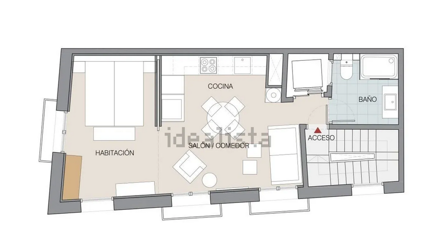 Este espacio amueblado y exterior ofrece una estancia cómoda y funcional. El apartamento cuenta con todo lo necesario para disfrutar de tu estancia. Encontrarás el dormitorio principal equipado con cama de matrimonio y armario para tu mayor comodidad. El salón está equipado con sofá, TV de pantalla plana, zona de comedor, conexión Wi-Fi gratuita, aire acondicionado y una cocina moderna e integrada que contiene todo el equipamiento necesario para tu estancia (cafetera, microondas, horno, fogones y más). Además, dispone de un baño completo con ducha.